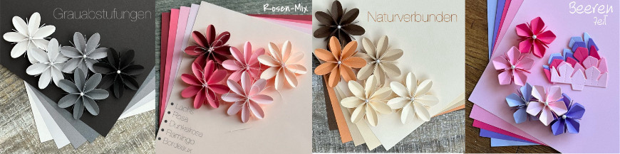 Bundle aus Papier, ITO-Yarn und Nadeln ...für herrliche Gestaltungen im floralen Sommermix! Wenn Sie die Blumen wie im Foto basteln möchten, benötigen Sie eine oder 2 Größen der Nr.16, dann kann es losgehen, die Anleitung für die Gestaltung mit dünnen Papieren, sowohl mit einer, als auch mit 2 Stanzen, liefern wir im Bundle mit!