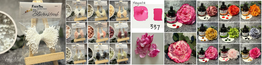 Blütenstaub Ein tolles Accessoire, um die Faltblumen noch lebendiger werden zu lassen. Die einzelnen Blütenpollen einfach vor dem Zusammenfalten der Blume in die Mitte einkleben und ein bisschen rausziehen, sodass die Länge etwas variiert. 1 Päckchen / je Farbe / 350-400 Stränge/ an beiden Seiten Pollen