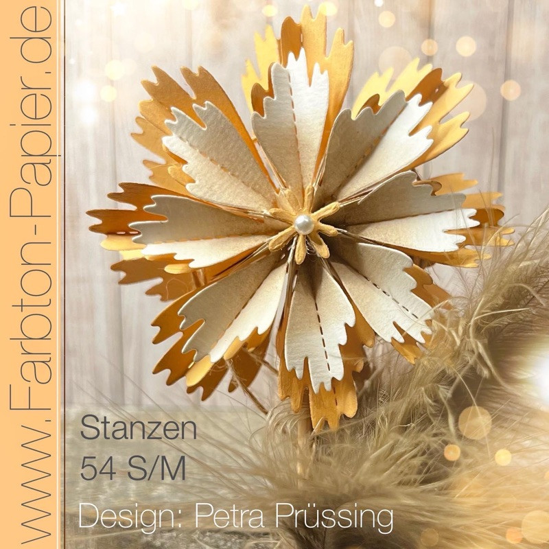 Sie erstellen mit der Stanze mindestens 6 Stanzteile, die Anleitung finden Sie nach der Produktbeschreibung, zum Download, als PDF.