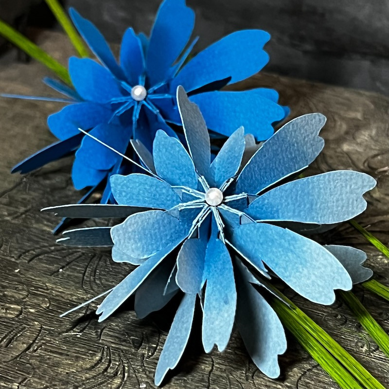Nun sind keine Grenzen mehr gesetzt, Papier und Anzahl der gefalteten Einzelteile liegen jetzt in Ihrem Ermessen, die Blumen verändern sich, wenn Sie die Anzahl der Tüten variieren, das macht die Stanzen so unglaublich vielseitig.