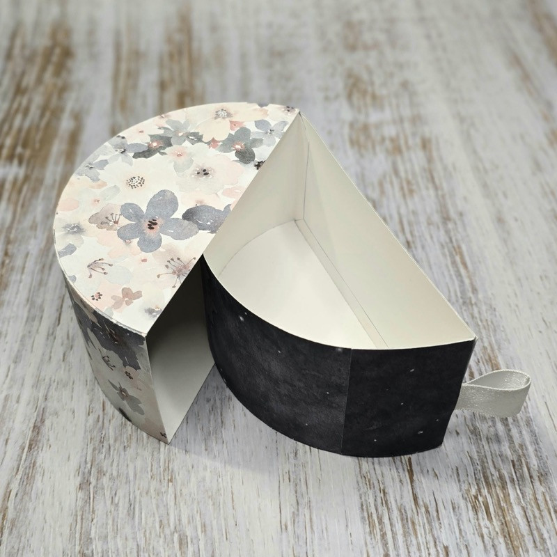 Diese Box ist herausfordernder als alle anderen Boxen und es muss sorgfältig gearbeitet werden. An einem Band kann die halbrunde Schublade aus dem Fach gezogen werden. Das Scharnier fungiert als Verbindung von Schublade und Fach.