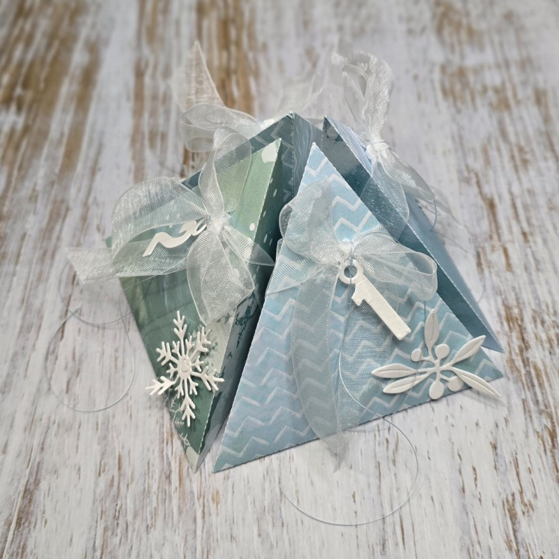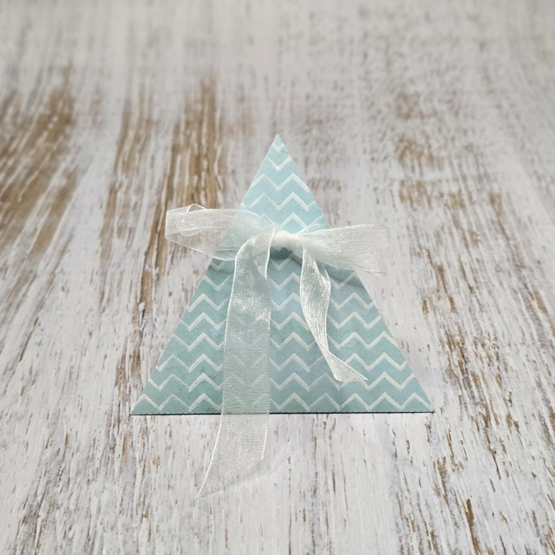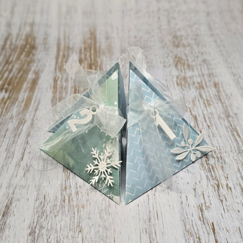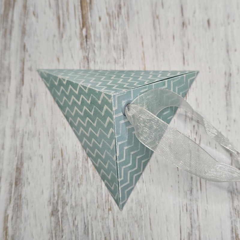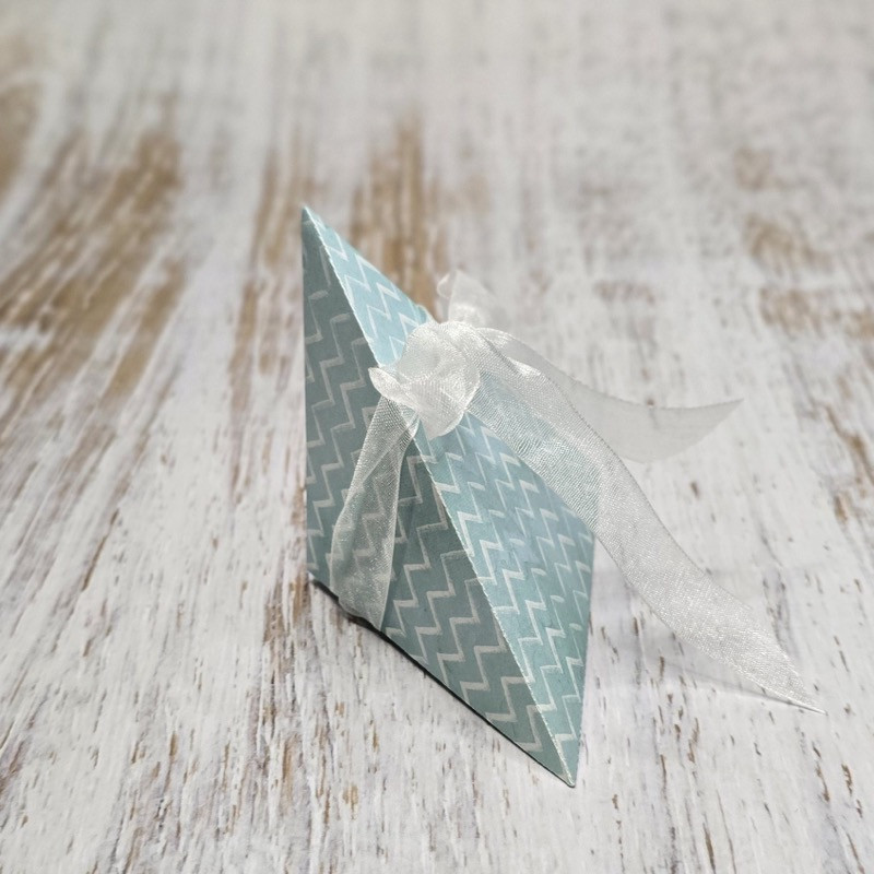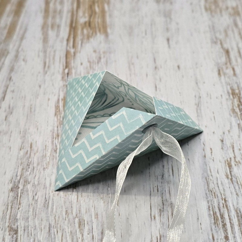 Die Box ist ebenfalls einfach und schnell zusammengebaut und wird mit einem Band verschlossen. Vier dreieckige Boxen ergeben zusammen eine Pyramide. Du kannst aber auch nur eine große Box als Verpackung nutzen, ganz wie du es benötigst.