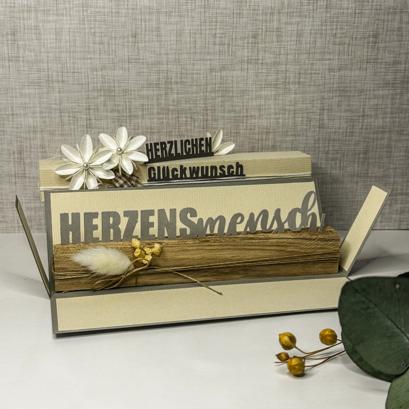 Dieser ist eine Datei für gängige Hobbyplotter, die das Schnittmuster der Box und der Karte beinhaltet, es handelt sich hierbei um keine Stanze!