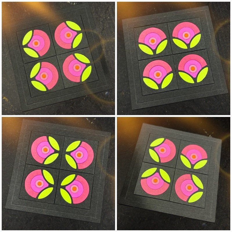 Eine Stanze, mit geometrischen Grundelementen im Kleinformat, die in vorgegebene Raster eingepuzzelt werden können.