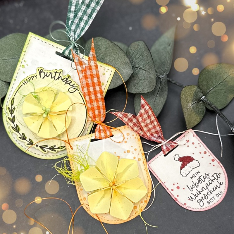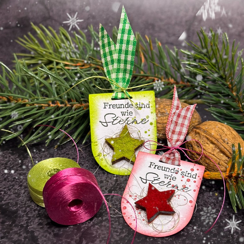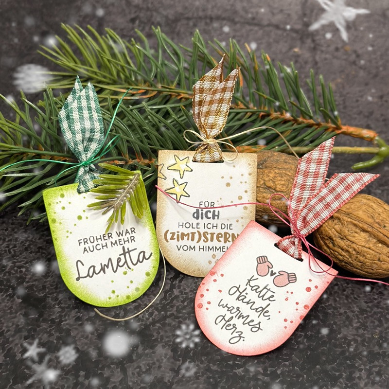 Ihr erhaltet bei diesem Artikel die Anhänger-Stanzen, die Winterwonderland Stempel und Stanzen müssen separat erworben werden.