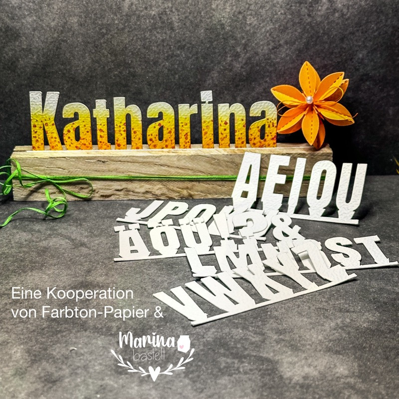Ein Buchstabenset für Klötzchen in Kooperation von Farbton-Papier und Marina.bastelt.