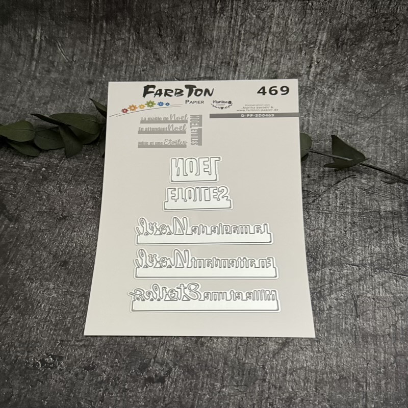 Ein Weihnachtsset mit 5 Schriftstanzen, die wieder in Zusammenarbeit mit Marina.bastelt entstanden sind.