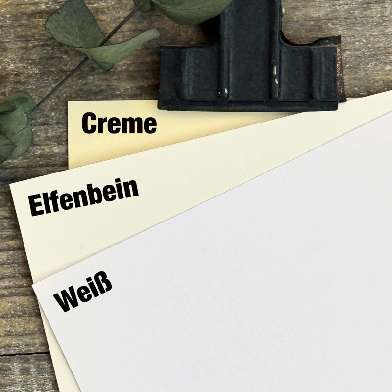 Bei der Farbe und Beschaffenheit des Papiers kann es, je nach Wiedergabe auf dem Bildschirm und durch die Fotografie, zu Abweichungen kommen.