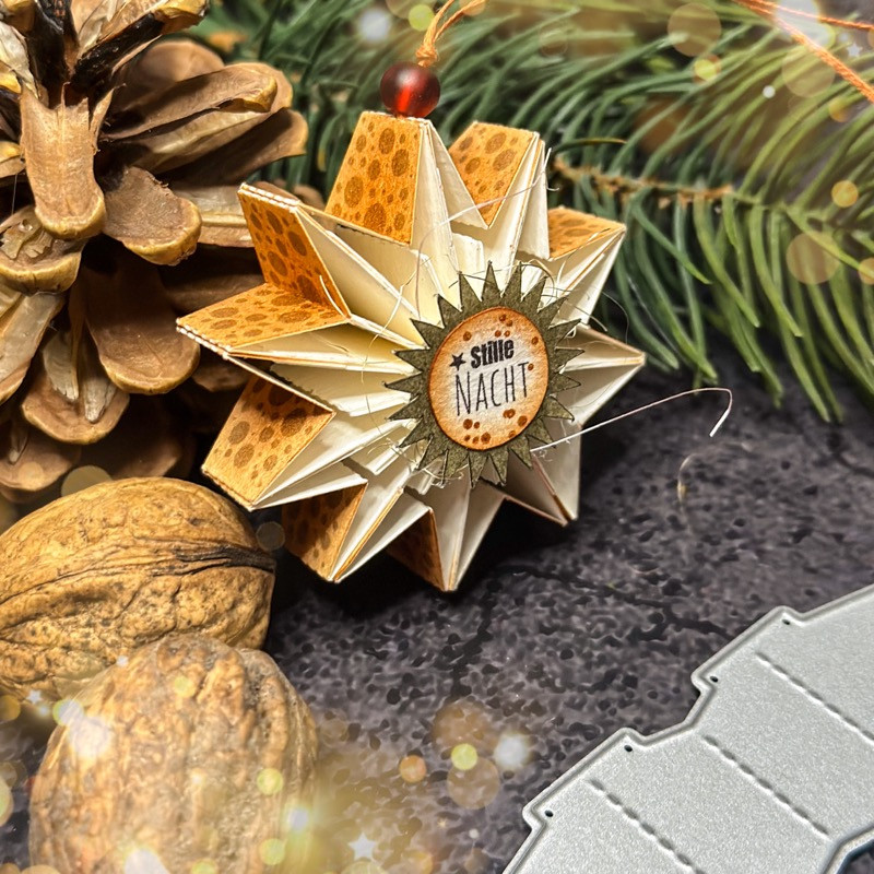 Ihr benötigt mindestens 8 Teile, eine Faltanleitung findet ihr auf jeder Stanzenrückseite.