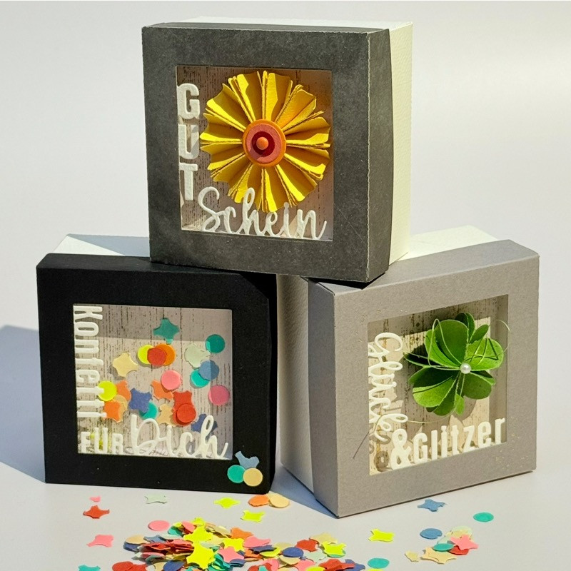 Passend für die quadratische Box Stanze Nr.180, für die Tüten, Nr. 185 und 186 aber auch für Karten eine tolle Möglichkeit Schriften zu integrieren.