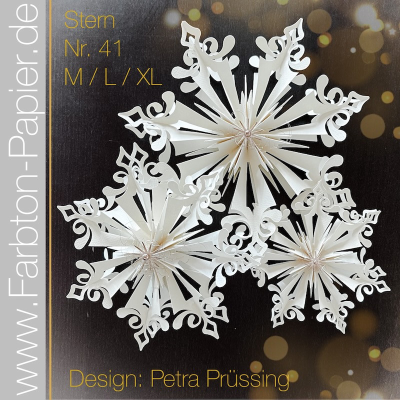 Jetzt wird es romantisch, filigran und zart, in weiß oder in Farbe ein außergewöhnlicher Faltstern, der mit den Durchbrüchen und Rundungen eine ganz neue Gestalt gibt. Auch als Schneeflocke eine wunderschöne Variation. Verspielt und nostalgisch, ein Blickfang z.B. am Fenster und zur winterlichen Dekoration.