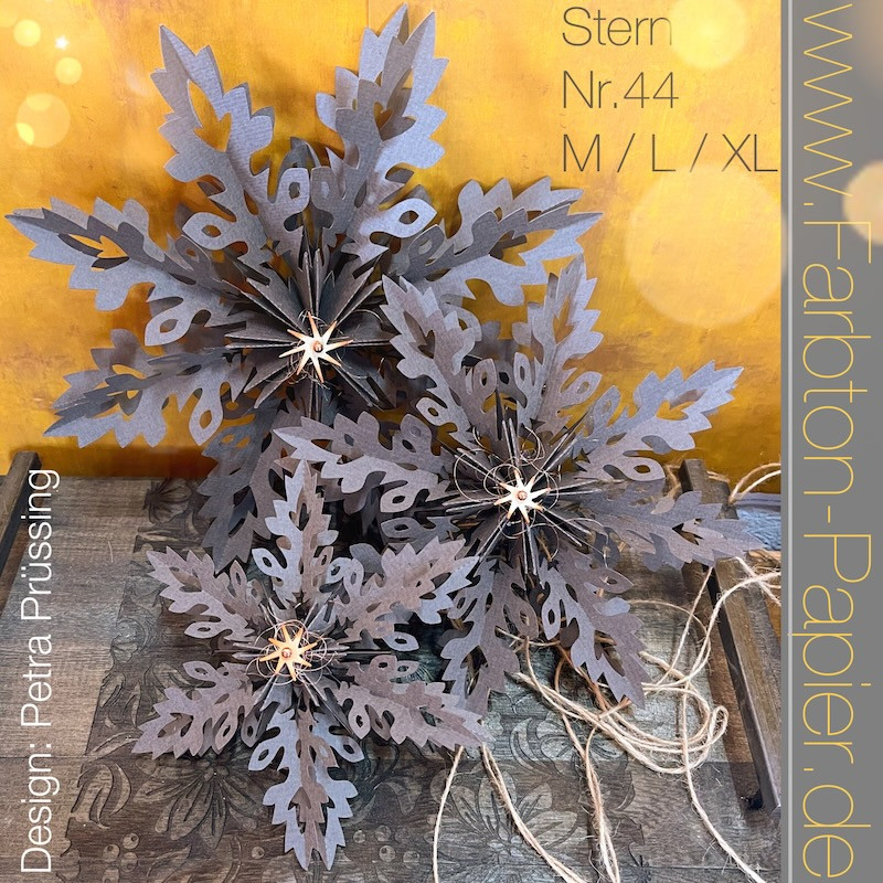 Jetzt wird es grazil und zart, in weiß oder in Farbe ein außergewöhnlicher Faltstern, der mit den feinen Aussparungen und Rundungen fast etwas floral wirkt. Ein verspielter Stern oder in weiß als Schneeflocke, der ein Blickfang an jedem Weihnachtsbaum, als Geschenkanhänger, oder Fensterdeko...etc., glänzen wird. Durchmesser des fertig gebastelten Sterns:...