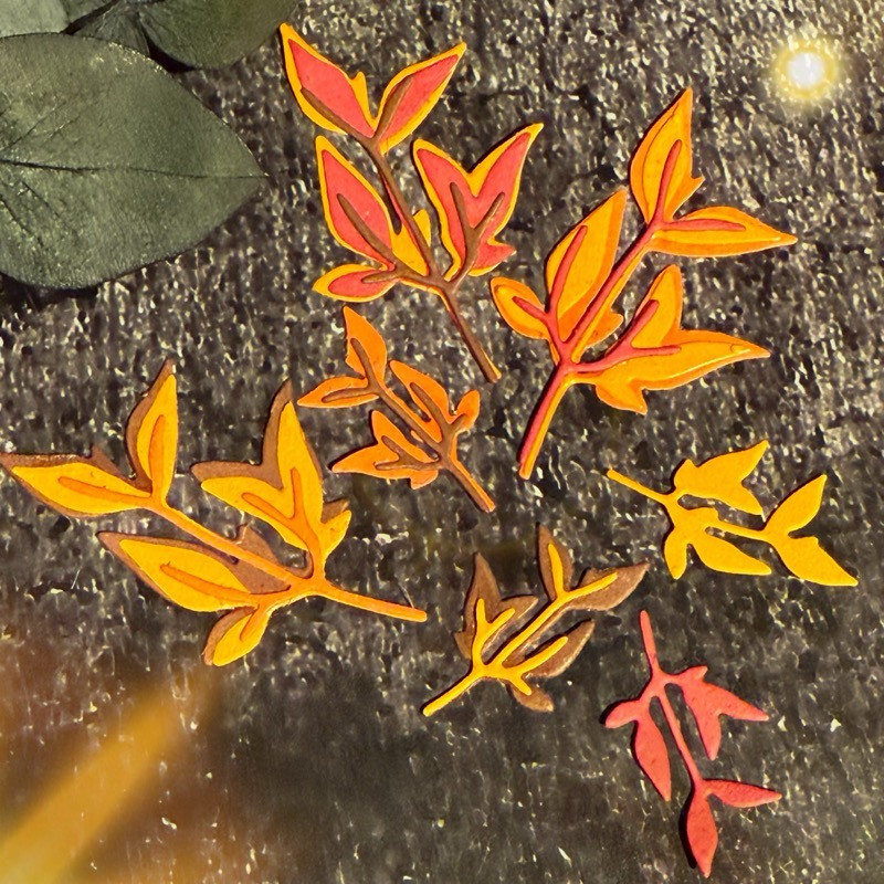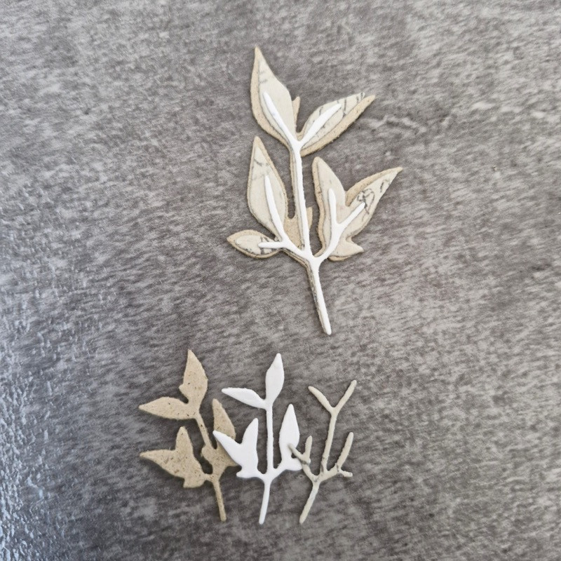 Stanzen für kleine Blätter sind aus Andreas Hand entstanden, Blätter die einzeln oder verschiedenfarbig geschichtet aufeinander geklebt werden können.