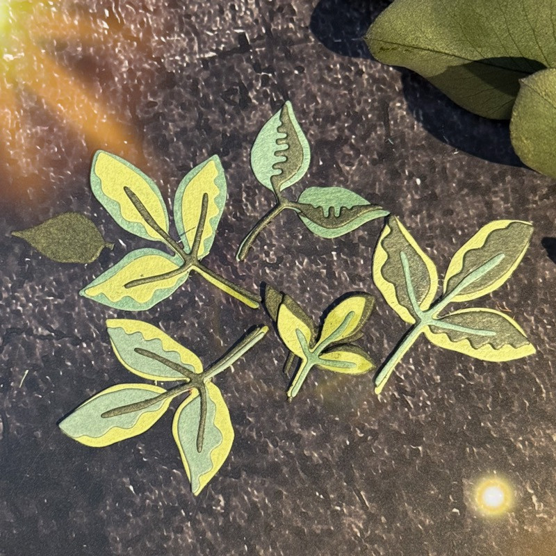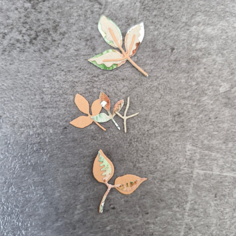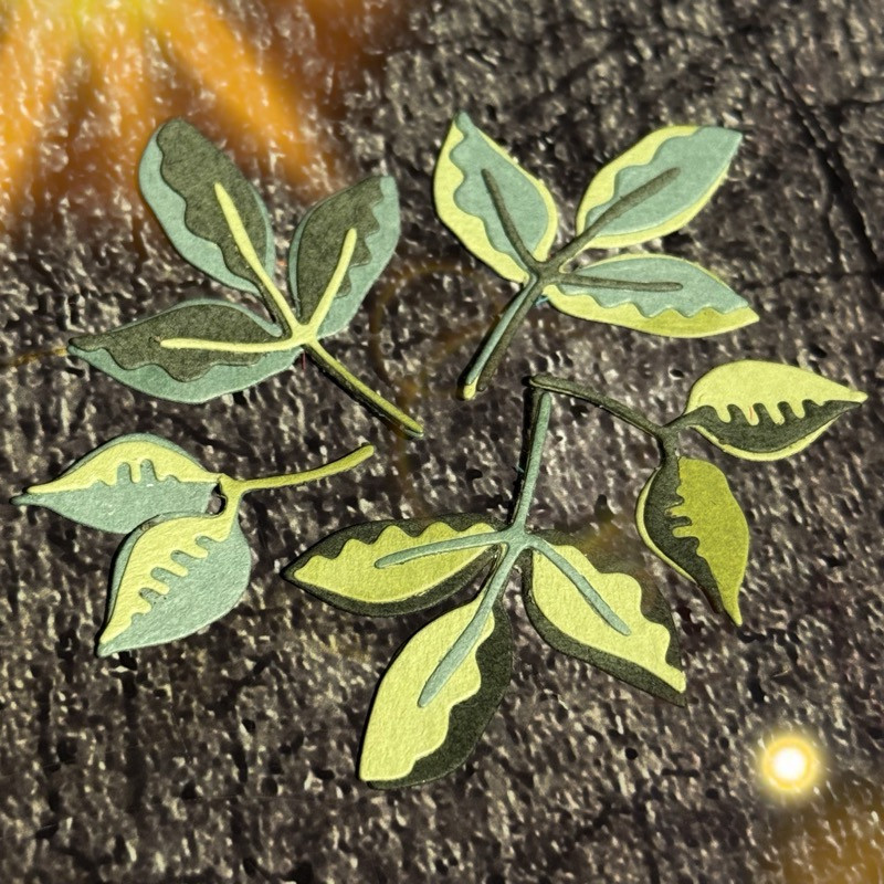 Stanzen für kleine Blätter sind aus der Hand von Andrea entstanden, Blätter die einzeln oder verschiedenfarbig geschichtet aufeinander geklebt werden können.