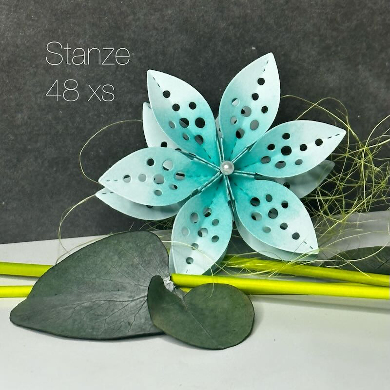 Sie erstellen mit der Stanze mindestens 6 Stanzteile, die Anleitung finden Sie nach der Produktbeschreibung, zum Download, als PDF.