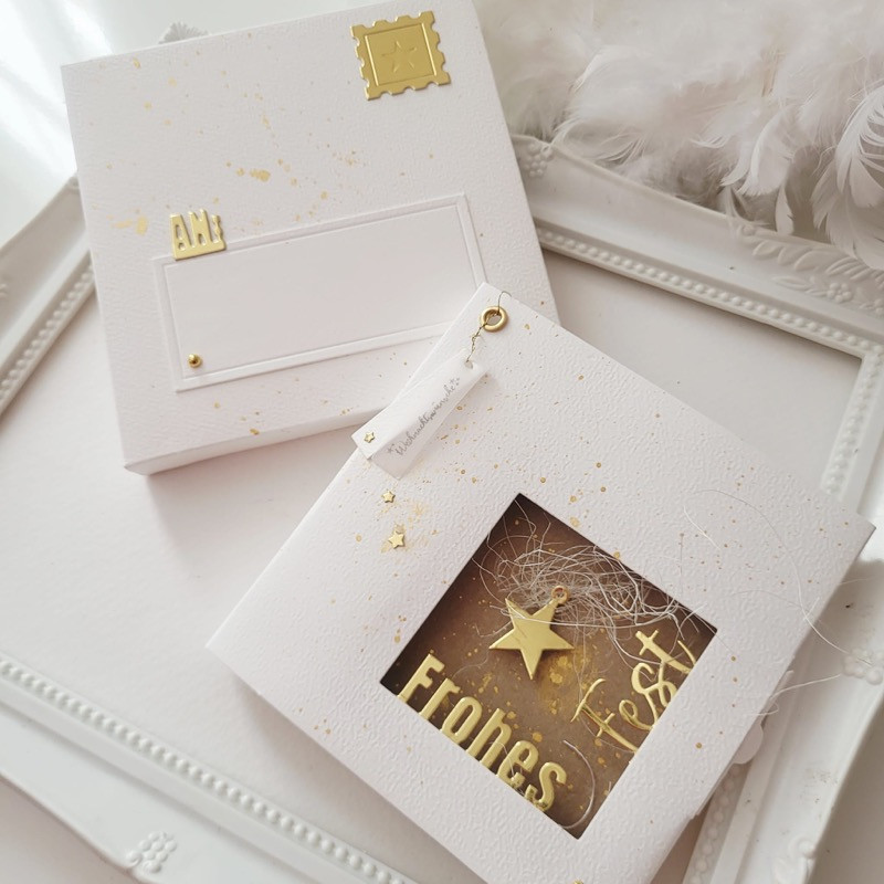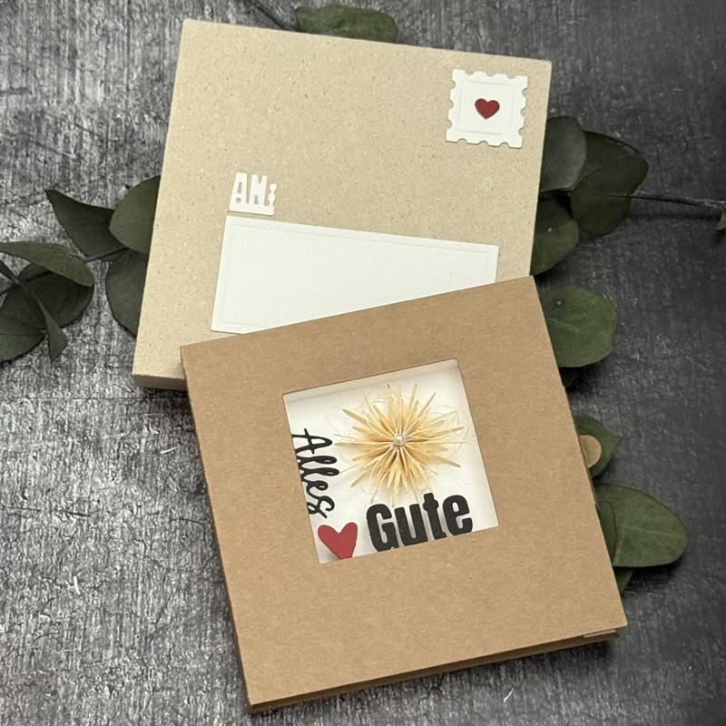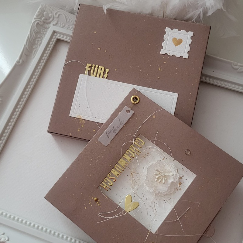 Eine Karte mit Fenster für die vielen Schriftzüge, die in Kooperation mit Marina.bastelt entstanden sind. Alles kann hin und her kombiniert werden, 2 Schriften sind im Set bereits enthalten, ebenfalls die Rückwand und eine Verblendung für dieselbe.