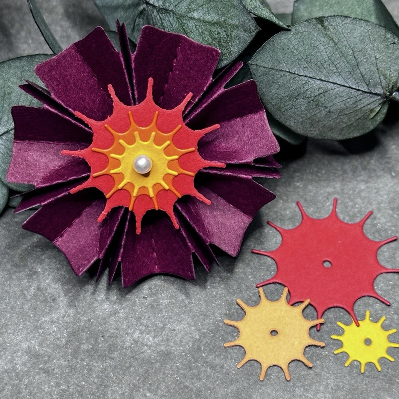 Wie kleine Zahnräder passen sie besonders gut zum Lampion Nr.62 und den 73-er Blumen, ein schönes Accessoire zum gestalten des Mittelpunktes.