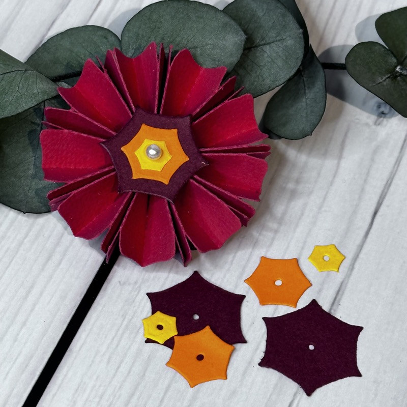 Alle Stanzen haben ein Loch in der Mitte, um die Nadeln für den Mittelpunkt genau mittig setzen zu können.