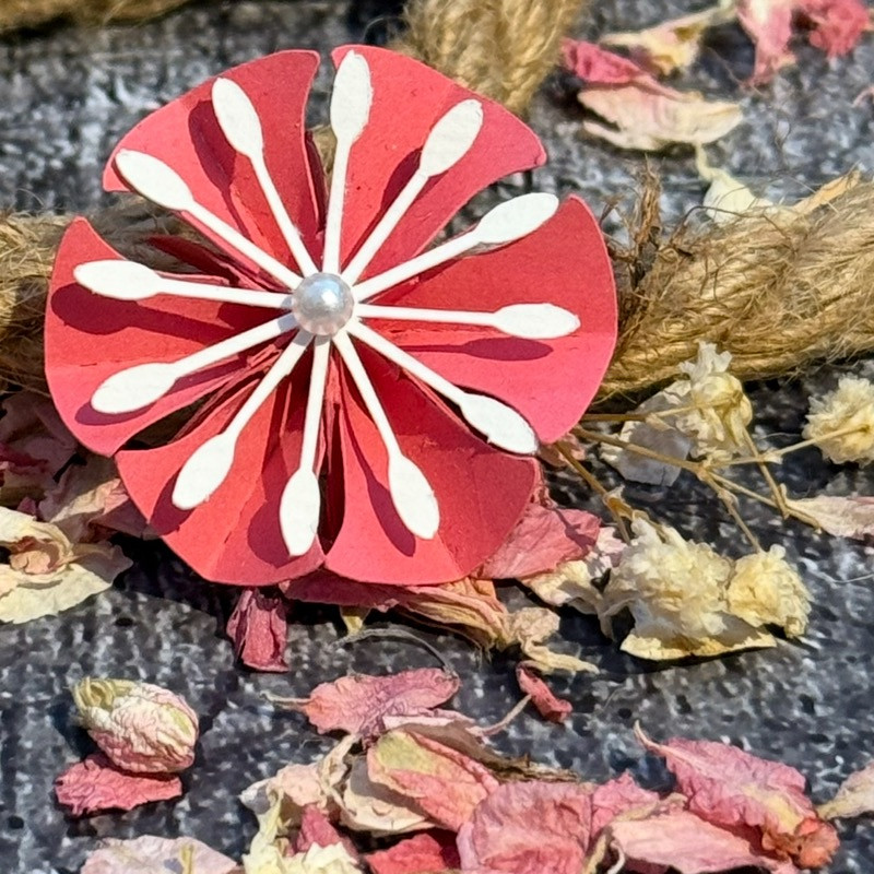 4-teiliges Set, passend zusammengestellt für unsere Faltobjekte, die Blumen in verschiedenen Größen, haben schon ein mittig gestanztes Loch und passen so ganz einfach, symmetrisch aufeinander.