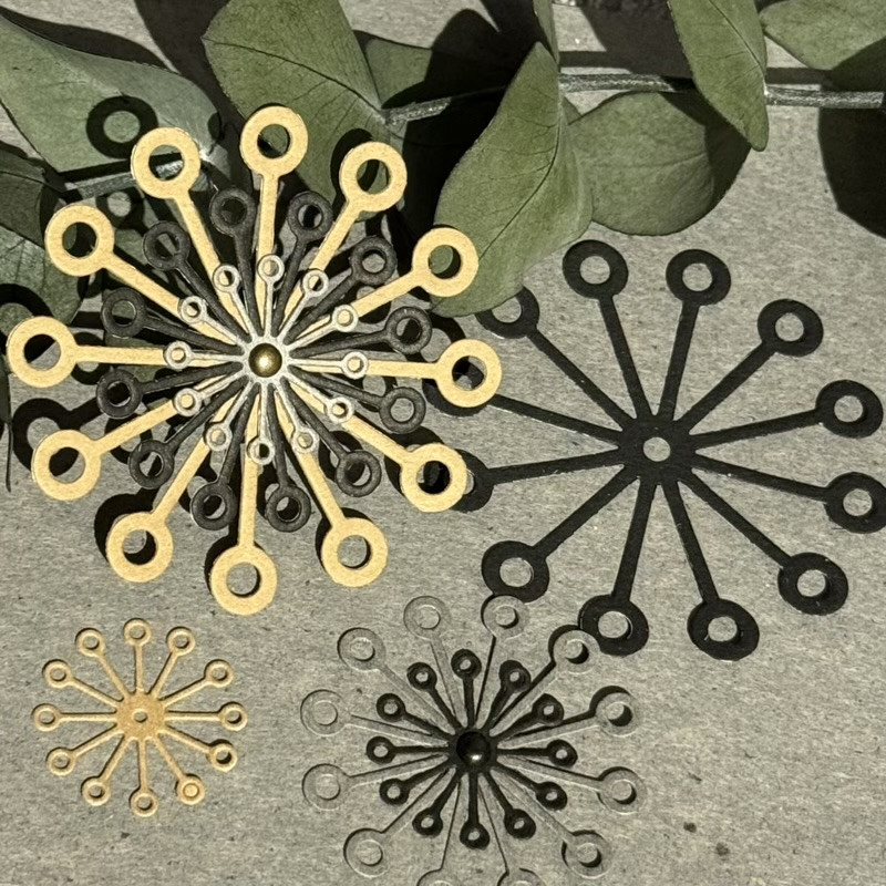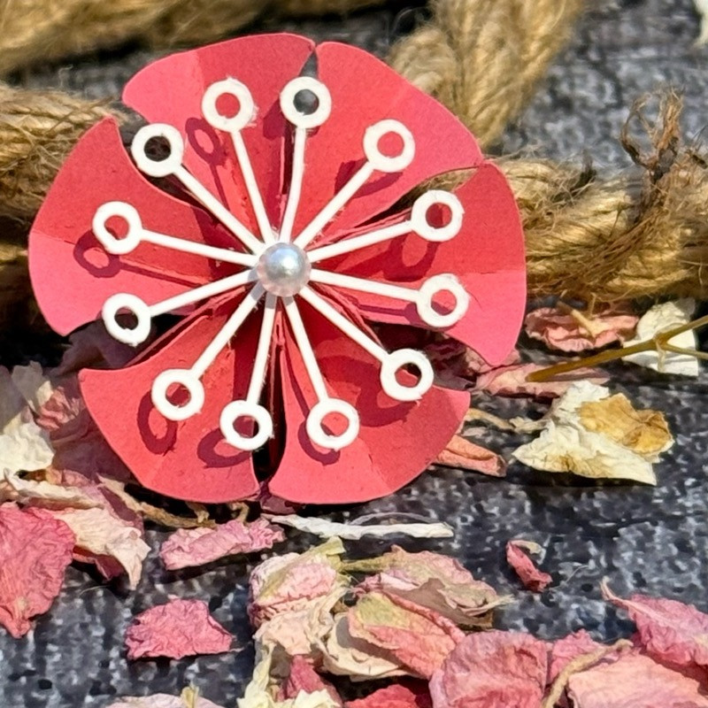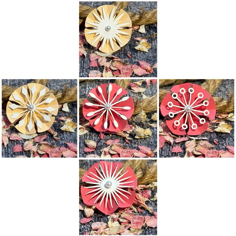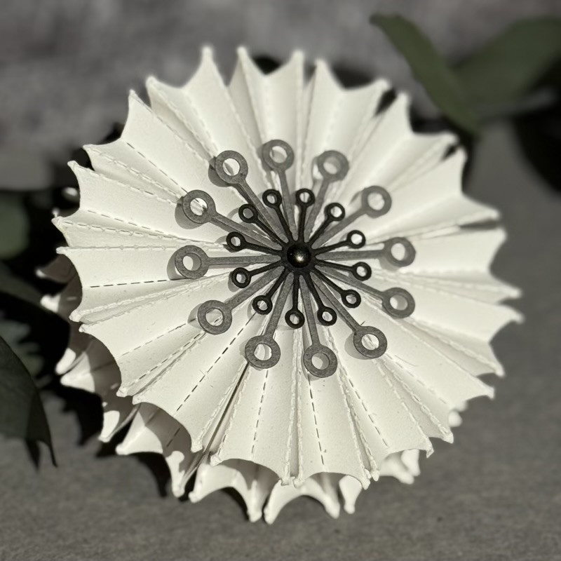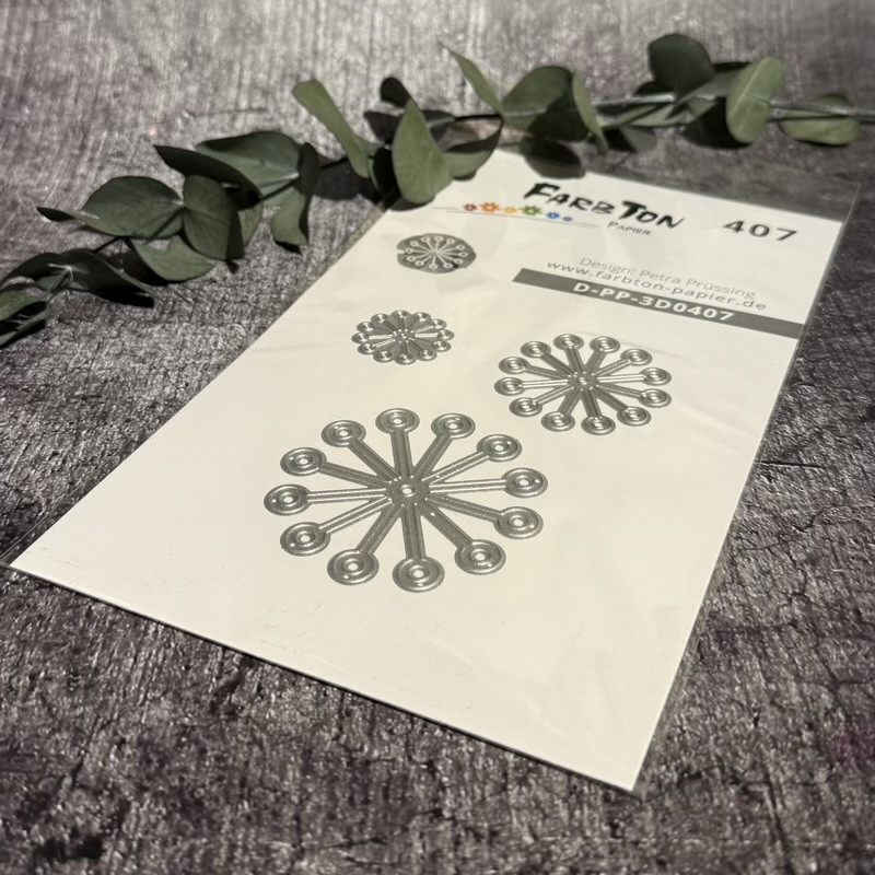 3-teiliges Set, passend zusammengestellt für unsere Faltobjekte, die Blumen in verschiedenen Größen, haben schon ein mittig gestanztes Loch und passen so ganz einfach, symmetrisch aufeinander.