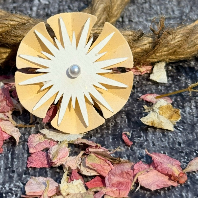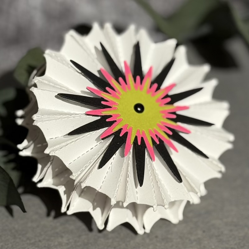 3-teiliges Set, passend zusammengestellt für unsere Faltobjekte, die Blumen in verschiedenen Größen, haben schon ein mittig gestanztes Loch und passen so ganz einfach, symmetrisch aufeinander.